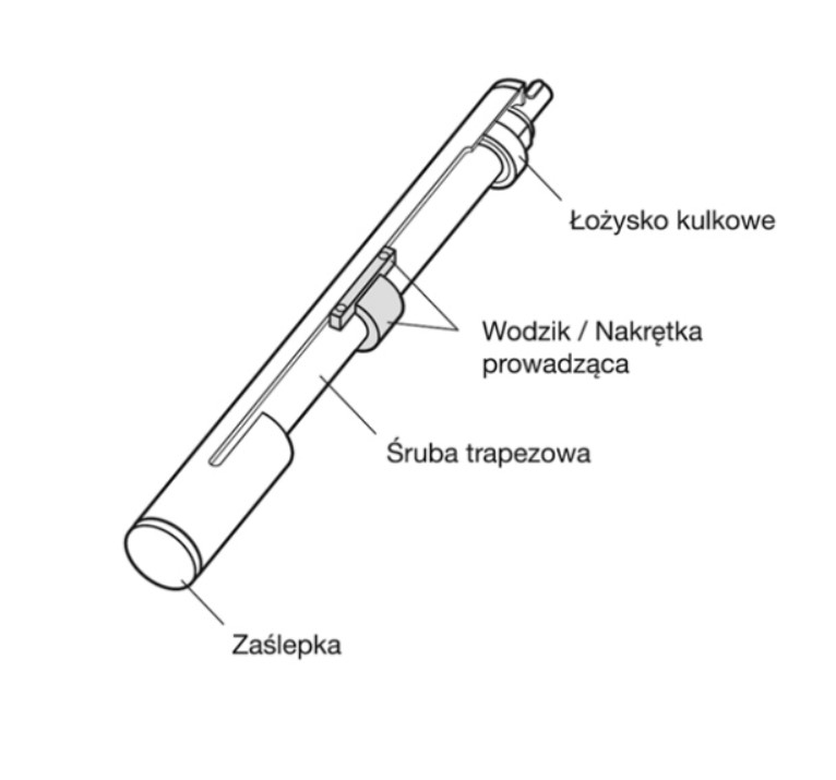 Rys. 6. Połączenie mechanizmu ze śrubą pasowaną za pomocą stalowej linki