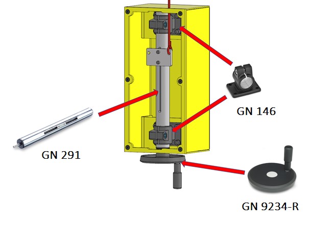 Mechanizmy przesuwu serii GN 291 składają się ze śruby trapezowej z nakrętką prowadzącą, osadzonej obustronnie na łożyskach kulkowych w profilu. Na nakrętce prowadzącej jest zamocowany wodzik, przesuwający się w szczelinie wyfrezowanej w profilu (Rys. 4). Wodzik ten umożliwia zamocowanie elementu przesuwnego poprzez jeden ze standardowych łączników przy jednoczesnym zabezpieczeniu nakrętki prowadzącej przed obrotem.