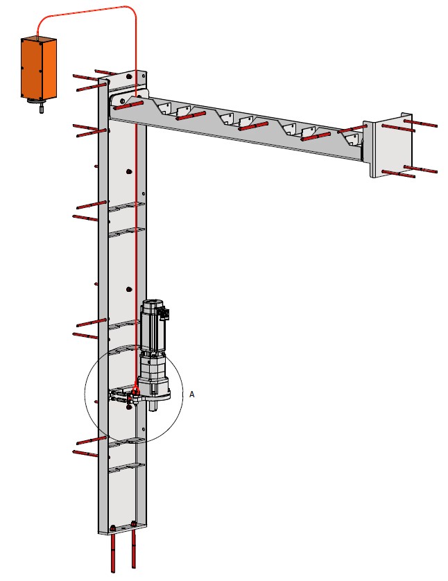 W aplikacji firmy Radpro zastosowano mechanizm przesuwu z kołem, który został zamocowany w skrzynce serwisowej za pomocą dwóch łączników. Do wodzika mechanizmu przesuwu przymocowano stalową linkę (Rys. 5).