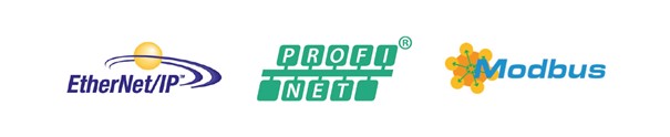 Wskaźniki serii DD52R-E-RF komunikują się z układem sterowania (PLC – programmable logic controller) poprzez jednostkę sterującą UC-RF (Rys. 2). Standardowo dostępne są trzy modele jednostek, komunikujące się z PLC poprzez: Ethernet/IP, Profinet IO lub Modbus TCP (Rys. 3). Istnieje też możliwość wykonania specjalnych jednostek UC-RF z innymi interfejsami komunikacji tj.: Profibus, RS485 lub RS232. Same wskaźniki natomiast komunikują się z jednostką sterującą drogą radiową.