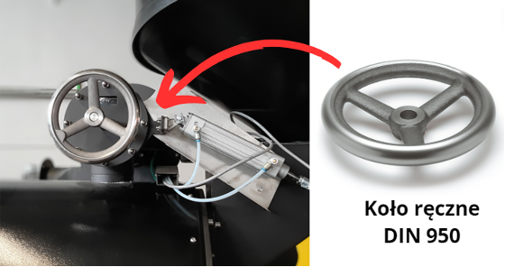 Koła DIN 950 (Rys. 7) są odpowiedzialne za regulację przepływu powietrza z bębna pieca.