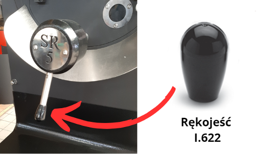 Rękojeści I.622 zamontowane na odważniku (Rys. 9) służą do podnoszenia klapy bębna, przez którą następuje zsyp uprażonej kawy na schładzacz. Wykorzystany odważnik powoduje samoczynne domykanie się klapy.