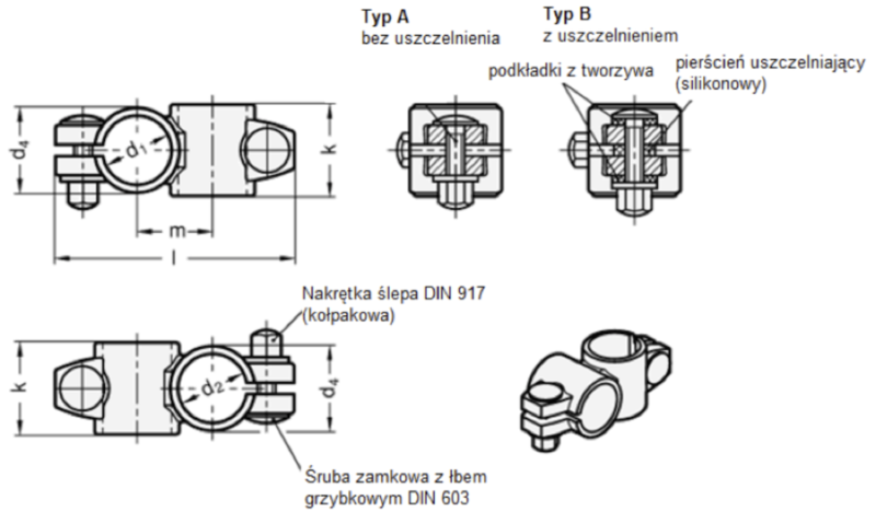 Również elementy złączne wykorzystane w łącznikach odpowiadają restrykcyjnym wymaganiom higienicznym. Zastosowano w nich śruby zamkowe z łbem grzybkowym DIN 603 i nakrętki zaślepione (kołpakowe) DIN 917, wykonane ze stali nierdzewnej A2. Opcjonalnie, każde połączenie śrubowe może zostać wyposażone w podkładki tworzywowe oraz silikonowe uszczelnienie.