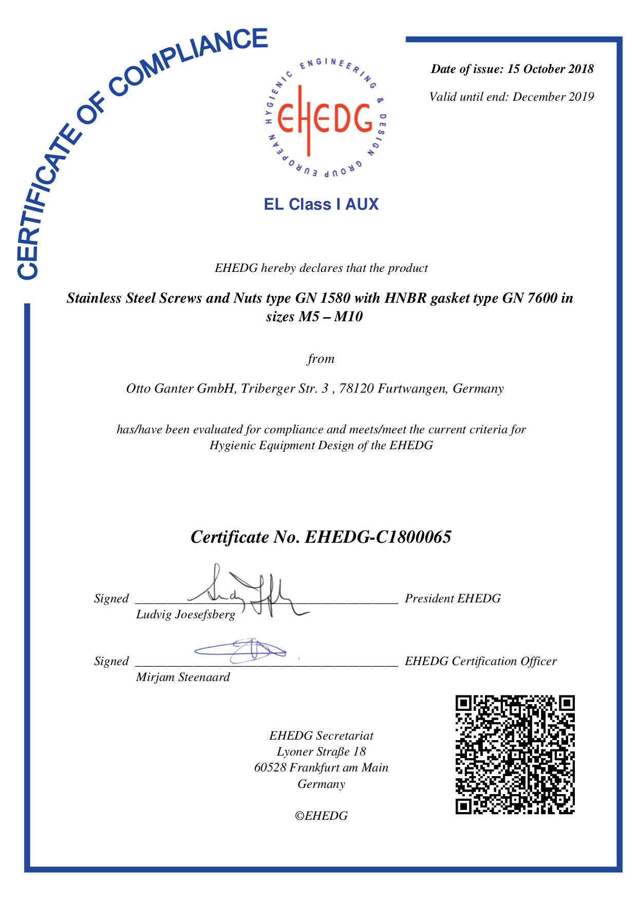 Rys. 4: Certyfikat EHED dla nakrętek GN 1580