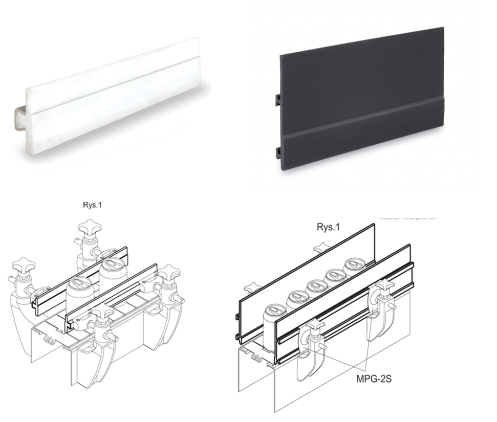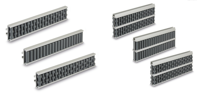 Całość asortymentu prowadnic bocznych uzupełnia seria akcesoriów, w tym łączniki, zaślepki, bloki rozdzielające i wsporniki z technopolimeru, a także profile ze stali nierdzewnej.