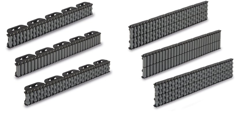 Naturalny kolor materiału nie pozostawia śladów na prowadzonych produktach, a oprawy ze stali nierdzewnej gwarantują wysoką odporność na korozję. Liniowe prowadnice boczne charakteryzują się wysoką odpornością na zużycie, a niski współczynnik tarcia sprawia, że są szczególnie przydatne w aplikacjach wymagających dużych prędkości przesuwu (Rys. 4).