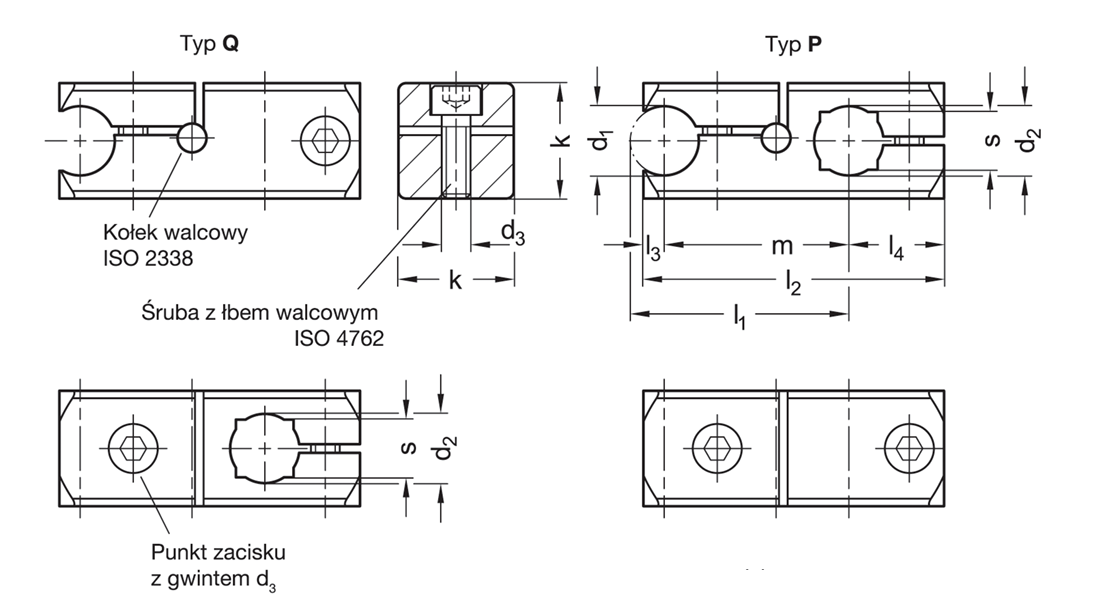 Łączniki dwukierunkowe serii GN 474.2 służą do łączenia profili równolegle lub prostopadle. Charakteryzują się również specjalnym kształtem otworu, który umożliwia zastosowanie łącznika w przypadku profilu o przekroju okrągłym oraz kwadratowym. Łączniki GN 474.2 zostały wykonane w dwóch wariantach (rys. 2):