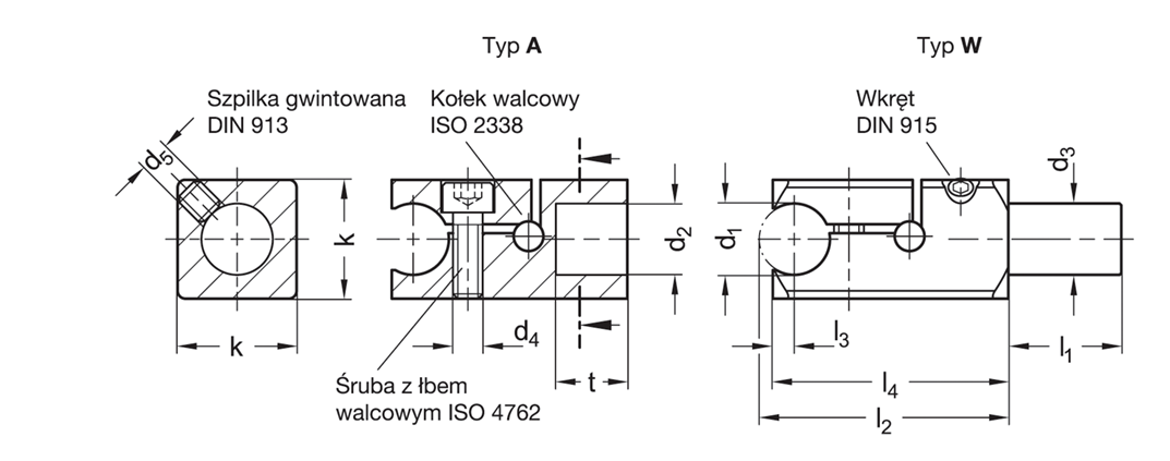 Rys. 2. Standardowe wykonania łączników dwukierunkowych GN 474.2