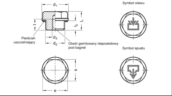 Powierzchnia czołowa korka może zawierać oznaczenia „wlew” lub „spust” wygrawerowane laserowo zgodnie z normą DIN, ale jest również dostępna bez jakichkolwiek oznaczeń.
