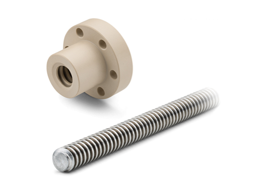 Nakrętki seriiNSFstandardowo dostępne są w dwóch wersjach materiałowych, z jednokrotnym prawym gwintem trapezowym oraz kołnierzem montażowym. Materiały wykorzystane do produkcji nakrętek umożliwiają ich ciągłą prace w zakresie temperatur od -40Codo +90Co.