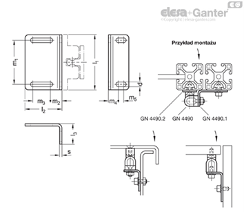 Rys. 3 Przykład zastosowania płyt montażowych GN 4490.1 i GN 4490.2 wraz z chwytakiem zatrzaskowym GN 4490 na obudowach metalowych lub profilach konstrukcyjnych.