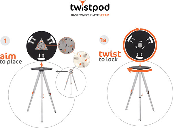 TWISTPOD jest bardzo solidną i sztywną konstrukcją. Przykładowo centralna płyta montażowa, łącząca blaty jest wykonana ze stali nierdzewnej o grubości 10 mm. Do tego, całość ma niską wagę i po złożeniu zajmuje bardzo mało miejsca. Powyższe cechy udało się uzyskać dzięki wielu godzinom prac konstrukcyjnych oraz prototypowaniu.
