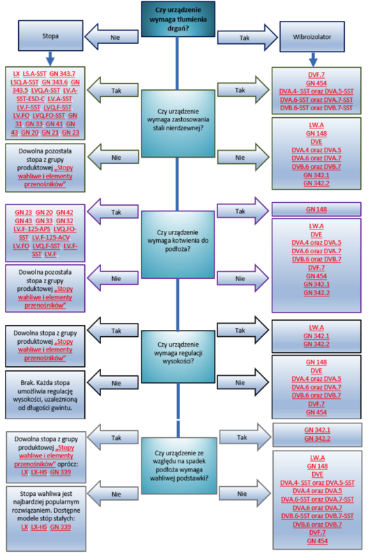 Poniżej znajduje się prosty schemat ułatwiający dobór konkretnego rozwiązania dla najczęściej występujących warunków pracy: