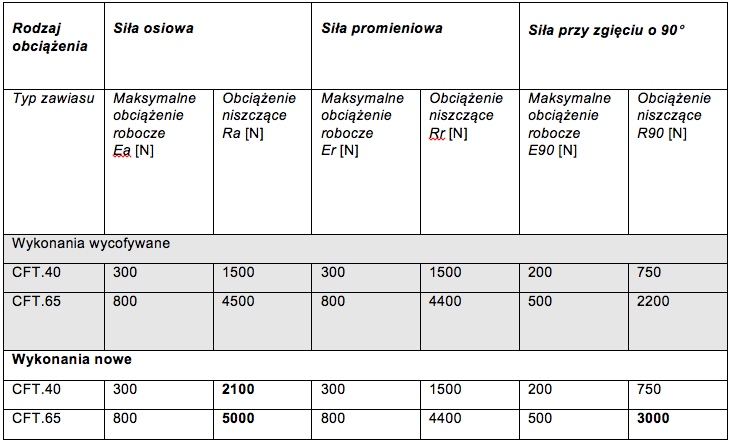 Modernizacja zawiasu CFT nie powoduje zmian jego wyglądu zewnętrznego, czy sposobu mocowania. Polepsza natomiast własności samego produktu. Ulepszone zawiasy wprowadzone są już do produkcji i sukcesywnie zastępują dotychczasowe modele. Kod i oznaczenie produktu pozostaje bez zmian .