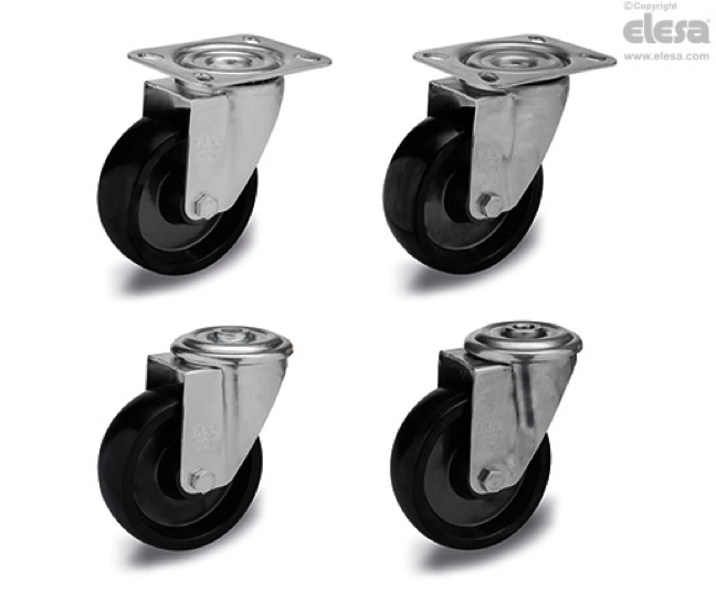 Zestawy kołowe RE.F7-N-HT posiadają piastę wykonaną z duroplastu na bazie fenolu PF, który jest odporny na temperaturę do 300⁰ C. Dzięki połączeniu z obudową skrętną za pomocą płyty lub otworu montażowego istnieje możliwość zamocowania koła w większości konstrukcji wózków lub maszyn. Połączenie koła odpornego na wysokie temperatury z obudową ocynkowaną jest rekomendowane do zastosowań wymagających głównie odporności na wysokie temperatury. Natomiast w połączeniu z obudową nierdzewną (AISI 304) daje możliwość stosowania w środowiskach wymagających odporności na korozję.