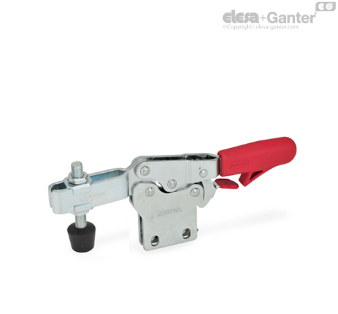 Dociskacze z przylgą pionową (typ NL), z dwoma przesuwanymi nakładkami, można stosować z różnymi śrubami dociskowymi wymaganymi w danej aplikacji. Typ NLC w komplecie jest dostarczany ze śrubą dociskową wyposażoną w neoprenową, gumową poduszkę.