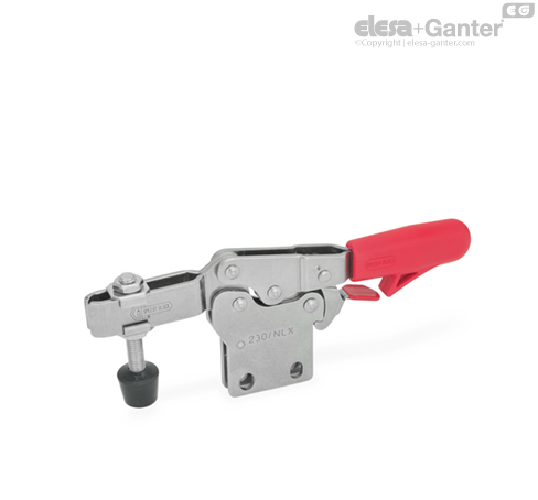 Dociskacze z przylgą pionową (typ NL), z dwoma przesuwanymi nakładkami, można stosować z różnymi śrubami dociskowymi wymaganymi w danej aplikacji. Typ NLC w komplecie jest dostarczany ze śrubą dociskową wyposażoną w neoprenową, gumową poduszkę.