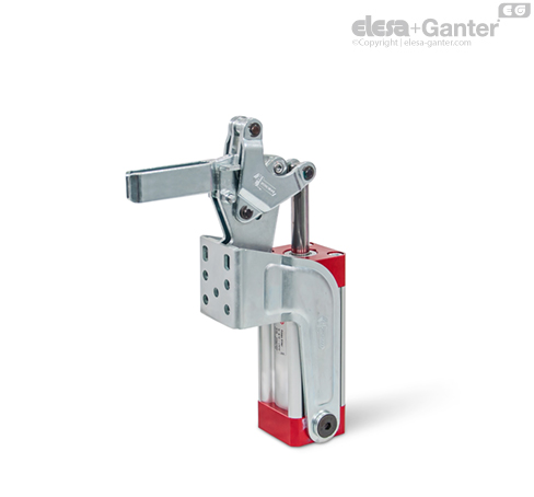 Zasada działania dociskacza pnematycznego GN 862 jest identyczna w konstrukcji i wymiarach z dociskaczami ręcznymi GN 812.