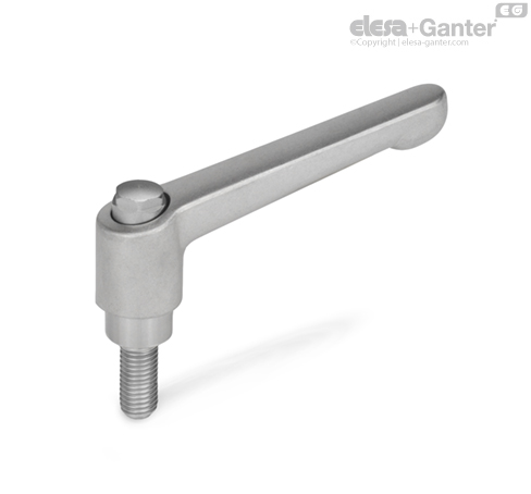 Dźwignie nastawne GN 300.5 są idealnym rozwiązaniem w zastosowaniach, gdzie zakres ruchu rękojeści jest ograniczony lub gdy jest wymagane jej ustawienie w określonej pozycji. Trzpień gwintowany jest połączony z rękojeścią za pomocą wielokarbu umożliwiającego łatwe rozłączenie.
