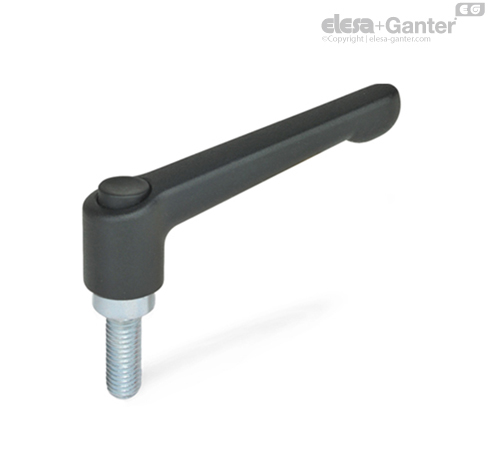 Dźwignie nastawne GN 303.2 są używane w aplikacjach, w których elementy muszą być zablokowane w ograniczonej przestrzeni lub rękojeść po zablokowaniu musi być ustawiona w określonej pozycji. Korpus jest połączony z rękojeścią za pomocą wielokarbu.