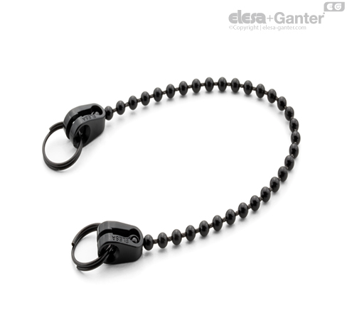 Łańcuch kulkowy i zaczepy, technopolimer na bazie żywicy acetalowej (POM), kolor czarny.