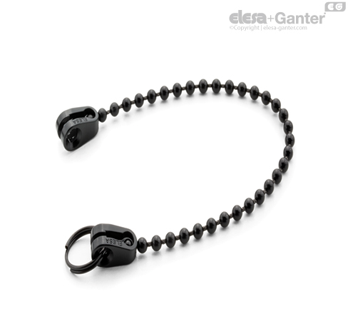 Łańcuch kulkowy i zaczepy, technopolimer na bazie żywicy acetalowej (POM), kolor czarny.
