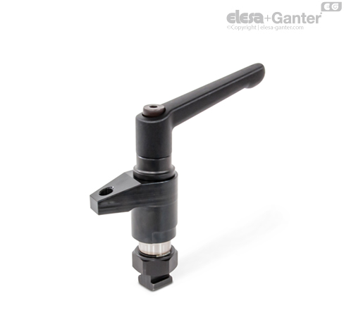 Ramię zaciskowe można obrócić o 360° ręcznie, umożliwiając szybkie i łatwe wkładanie oraz wyjmowanie elementów obrabianych od góry. Gwint na ramieniu dociskowym d3 można wykorzystać do mocowania elementów pozycjonujących i dociskowych.