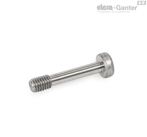 Stal nierdzewna, z niskim łbem, z przewężonym trzpieniem, umożliwiającym zabezpieczenie przed zgubieniem