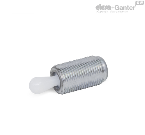 Nagwintowany korpus docisków bocznych GN 713 pozwala na dostosowanie ich wysokości do wysokości elementu mocowanego.