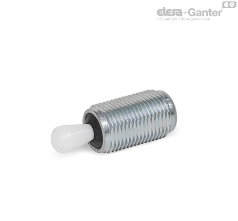 Nagwintowany korpus docisków bocznych GN 713 pozwala na dostosowanie ich wysokości do wysokości elementu mocowanego.