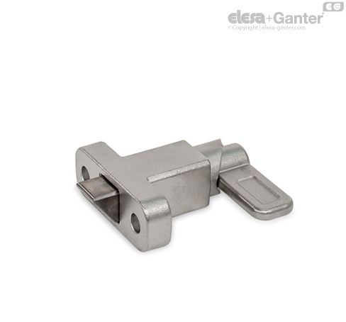 Trzpienie ryglujące GN 724.2 posiadają trzpień blokujący o kwadratowym przekroju poprzecznym, powierzchnię blokującą z jednej strony i ściętą z drugiej. Gdy przedmiot, który ma być zabezpieczony, napiera na ściętą powierzchnię, trzpień jest wpychany do korpusu. Po przejściu elementu przez korpus, trzpień wyskakuje, blokując ruch powrotny przedmiotu. Trzpień zatrzasku automatycznie zaczepia się na miejscu, gdy jest przesuwany w kierunku powierzchni zatrzasku. Blokadę można zwolnić poprzez odciągnięcie dźwigni.