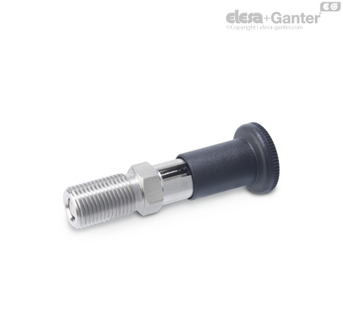 Trzpienie ustalające (typ C/CK) z wbudowanym w gałce mechanizmem blokującym mają zastosowanie wszędzie tam, gdzie potrzebne jest zablokowanie trzpienia po odwiedzeniu. W tym celu gałkę należy odciągnąć i obrócić o 90°. Niewielkie wcięcie ustala trzpień w pozycji odwiedzionej, zabezpieczając go przed nieumyślnym lub powstałym na skutek wibracji zatrzaśnięciem.