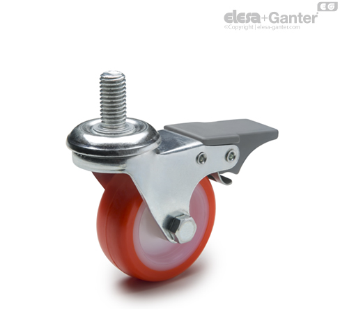 Mechanizm blokuje zarówno obrót koła, jak i obrót obudowy. Dźwignia blokady z technopolimeru.