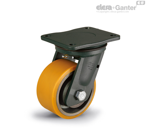 Odpowiednie do ciężkich zastosowań przemysłowych oraz trudnych warunków użytkowania jak uderzenia boczne lub wysokie prędkości. Zestawy kołowe z nalewanym wieńcem poliuretanowym, gwarantują doskonałą wytrzymałość toczną i elastyczność w połączeniu z odpornością na ścieranie i zużycie. W celu uzyskania dalszych informacji patrz RE.F4.