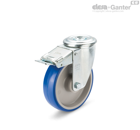 Całkowita (podwójna) blokada uniemożliwia obrót koła oraz płyty montażowej.