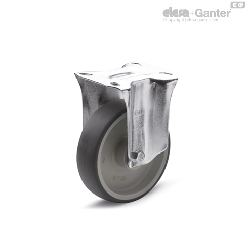 Całkowita (podwójna) blokada uniemożliwia obrót koła oraz płyty montażowej. Optymalizacja wymiarów i odciągana dźwignia blokady zapewniają minimalne gabaryty oraz maksymalny komfort obsługi. Sprężyna z hartowanej stali węglowej.