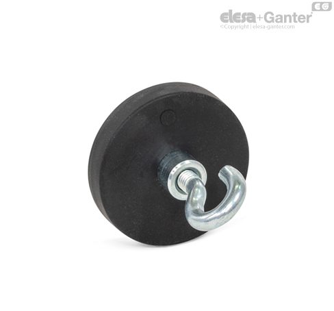 Magnesy GN 51.10 w osłonie gumowej tworzą razem ze stalowymi częściami osłaniającymi i wzmacniającymi magnes system, który koncentruje optymalnie strumień magnetyczny na gumowanej powierzchni magnesu.