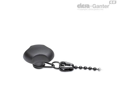Łańcuch kulkowy i zaczepy, technopolimer na bazie żywicy acetalowej (POM), kolor czarny.