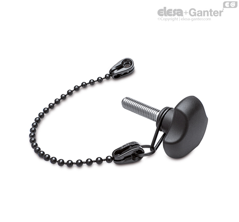 Łańcuch kulkowy i zaczepy, technopolimer na bazie żywicy acetalowej (POM), kolor czarny.