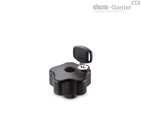 Wkładamy klucz do zamka umieszczonego w korpusie pokrętła i obracamy go o 180°. Wkręcamy pokrętło w gwintowany otwór lub nakręcamy na gwintowany trzpień (w zależności od wybranej wersji), aż do momentu zaciśnięcia połączenia, obracamy klucz z powrotem o 180° i wyciągamy z zamka. Po wykonaniu tych czynności pokrętło jest zamocowane, a jego korpus obraca się swobodnie, uniemożliwiając odblokowanie połączenia.