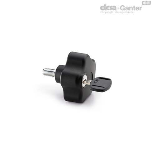 Wkładamy klucz do zamka umieszczonego w korpusie pokrętła i obracamy go o 180°. Wkręcamy pokrętło w gwintowany otwór lub nakręcamy na gwintowany trzpień (w zależności od wybranej wersji), aż do momentu zaciśnięcia połączenia, obracamy klucz z powrotem o 180° i wyciągamy z zamka. Po wykonaniu tych czynności pokrętło jest zamocowane, a jego korpus obraca się swobodnie, uniemożliwiając odblokowanie połączenia.