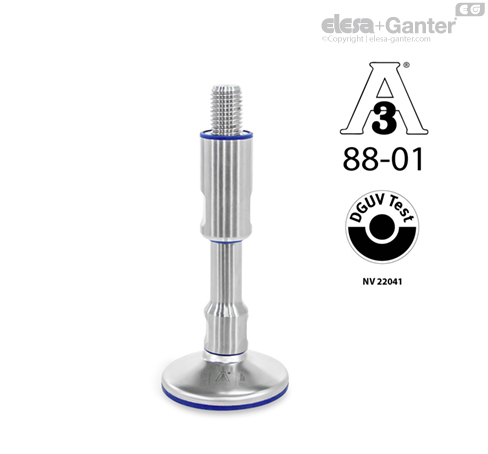 Podkładka z elastomeru uszczelnia przestrzeń pod podstawą przed wnikaniem zabrudzeń. Jest to zapewniane przez ciężar maszyny ustawionej na stopie. Pierścień uszczelniający w górnej części tulei regulacyjnej uszczelnia połączenie między tuleją a powierzchnią montażową stopy. Dzięki zastosowaniu zgarniacza i uszczelki przegubu ruchome elementy są zabezpieczone przed wnikaniem zanieczyszczeń.