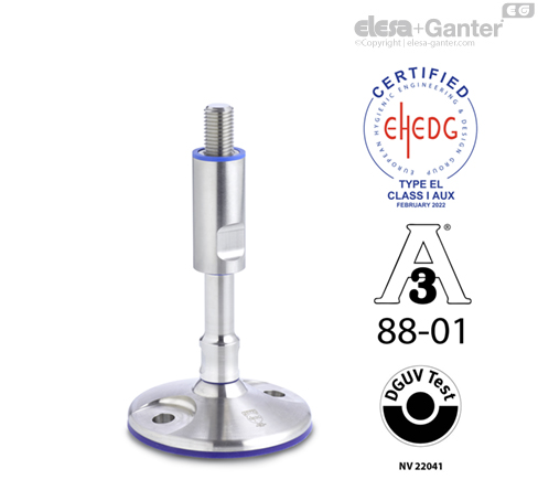Stal nierdzewna, certyfikaty EHEDG, 3-A i DGUV, bez lub z otworami do kotwienia/z rozszerzonym zakresem regulacji, konstrukcja higieniczna (Hygienic Design)