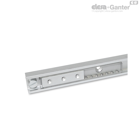 Prowadnice liniowe GN 2402 z wewnętrznym wózkiem są również nazywane łożyskami liniowymi. Mogą być stosowane na przykład do napędu szuflad lub drzwi przesuwnych przemieszczających się liniowo.