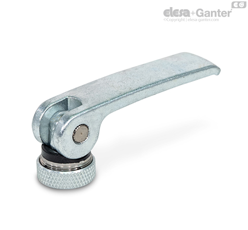 Dźwignia stal, podkładka oporowa z tworzywa sztucznego, z gwintem wewnętrznym / z trzpieniem gwintowanym