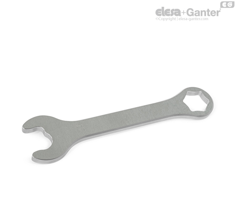 Klucze płasko-oczkowe GN 3113 służą do montażu i regulacji standardowych części o konstrukcji higienicznej (Hygienic Design) z dwoma lub sześcioma wyfrezowanymi podejściami pod klucz płaski.