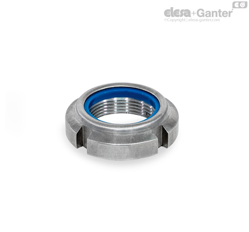 Nakrętki rowkowe GN 1804.1, dzięki zastosowaniu pierścienia z poliamidu są samohamowne. Mogą być stosowane jako nakrętka kontrująca i są wielokrotnego użytku.