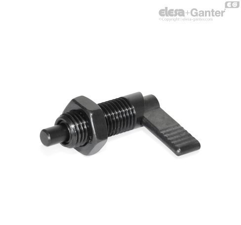 W przypadku trzpieni ustalających z krzywizną prowadzącą GN 721 trzpień ustalający jest cofany poprzez obrócenie dźwigni o 180°.