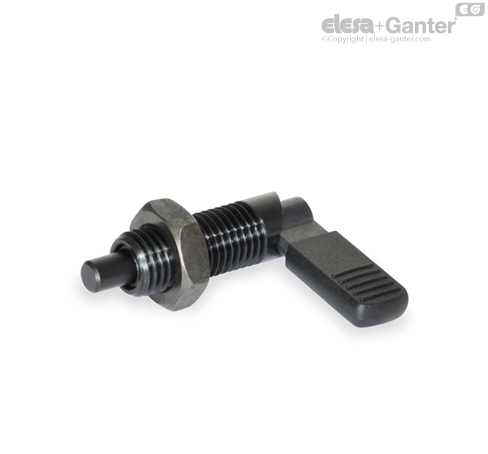 W przypadku trzpieni ustalających z krzywizną prowadzącą GN 721 trzpień ustalający jest cofany poprzez obrócenie dźwigni o 180°.