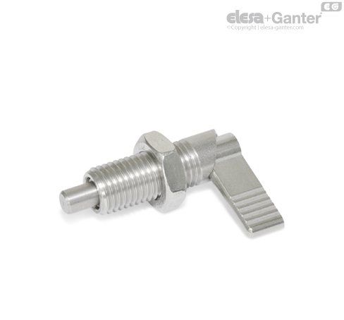 W przypadku trzpieni ustalających z krzywizną prowadzącą GN 721.5 trzpień ustalający jest cofany poprzez obrócenie dźwigni o 180°.